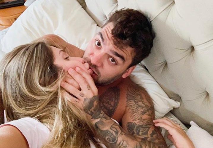 Carolina postou uma foto em que beijava o namorado, Pedro Ortega, com quem passa a quarentena e escreveu: “E aí solteiros? ninguém aproveitando a quarentena né? Chegou o momento dos casais”, brincou a loira.