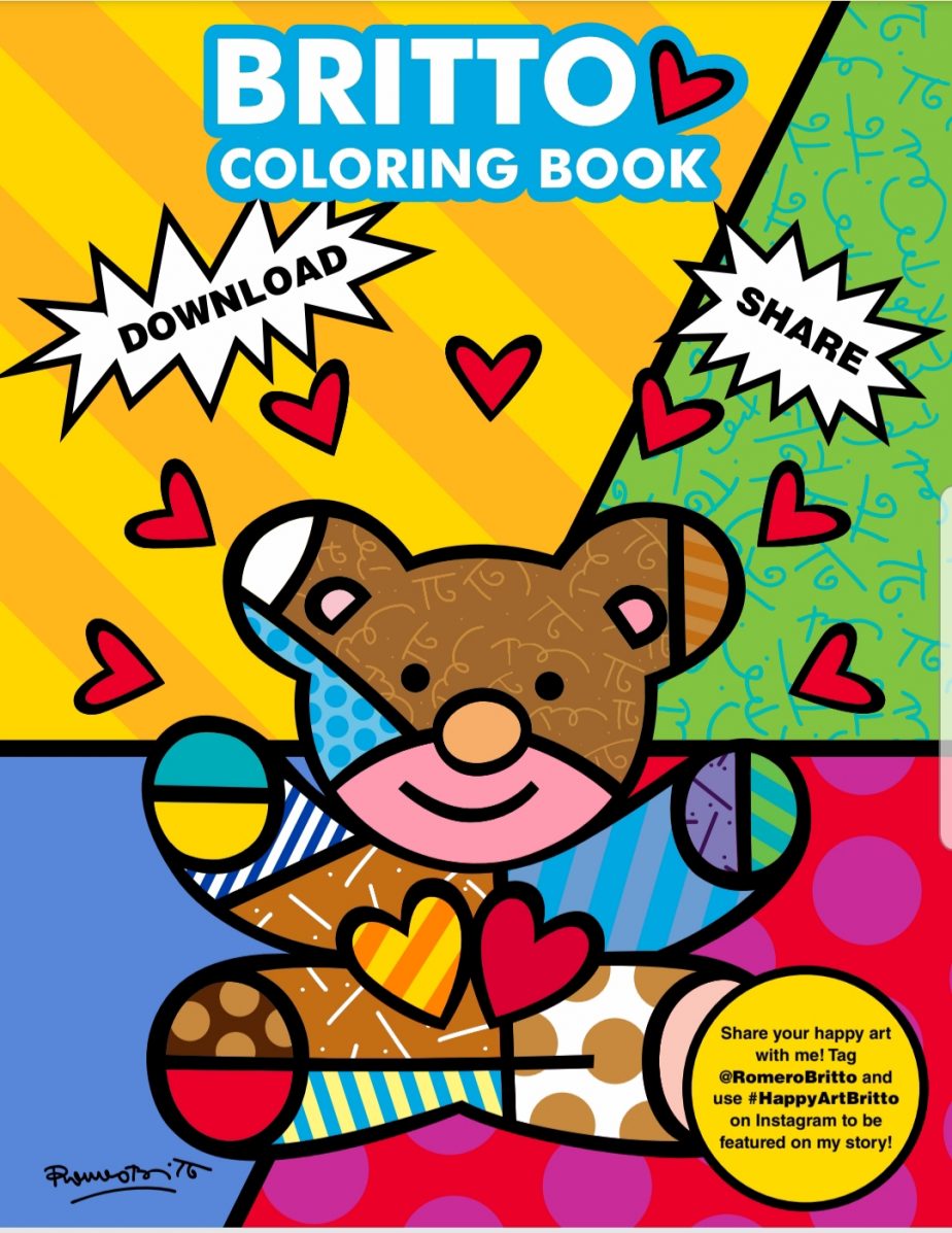 . Romero Britto disponibilizou gratuitamente seu livro para que crianças do mundo todo possam colorir. Free Britto coloringbook.