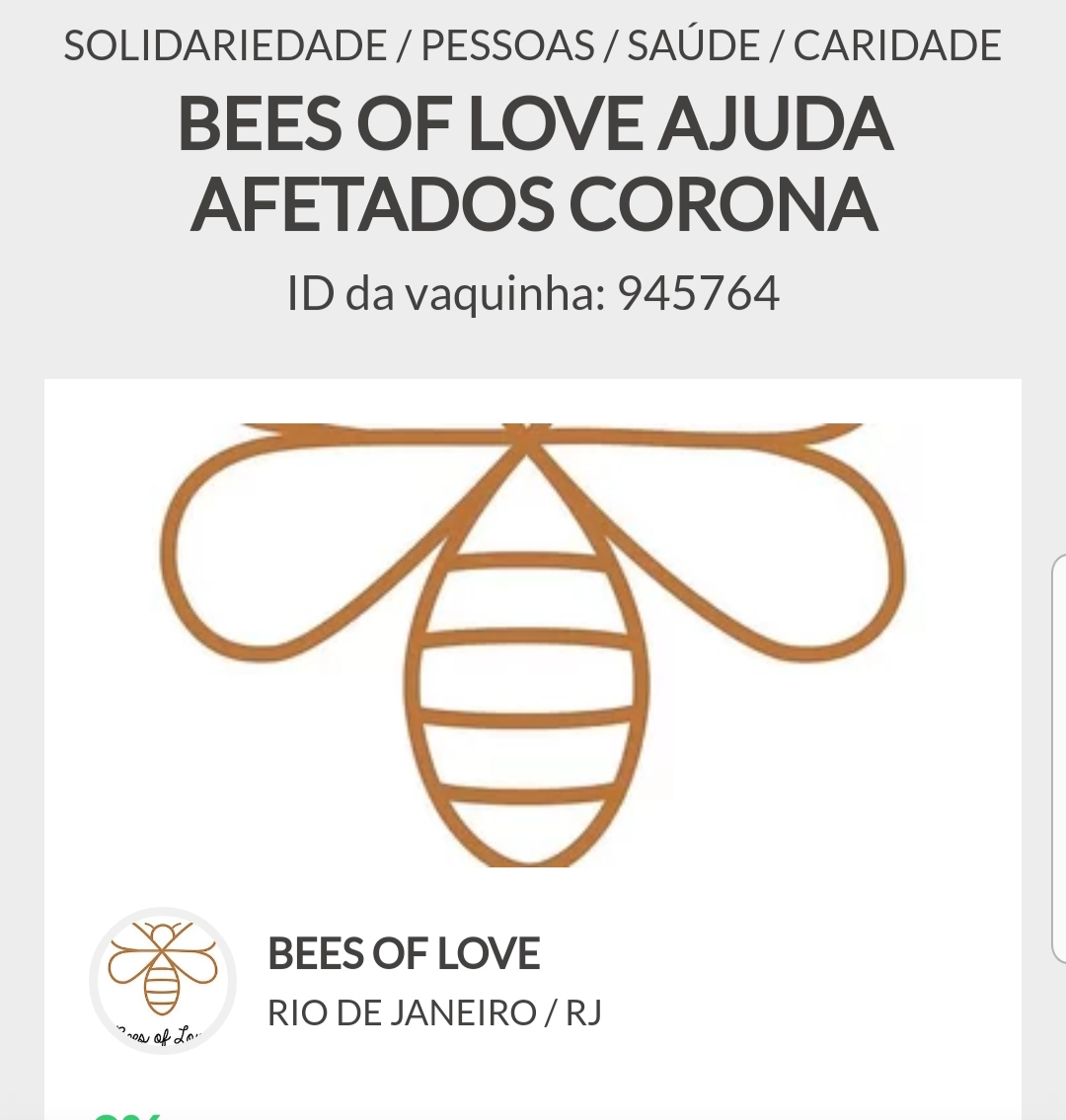 . A Bees of love ajuda os afetados pelo coronavírus com vaquinha virtual para compra de cestas básicas para a população carente, álcool em gel e máscaras para hospitais //vaka.me/945764