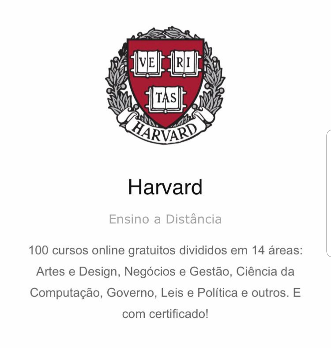 . Cerca de 450 cursos online gratuitos, de Ciência da Computação a Arte e Design, de Matemática a Ciências Sociais estão sendo oferecidos pelas principais universidades norte-americanas, como Harvard, Cornell, Princeton e Yale. Veja na página FreeCodeCamp.org