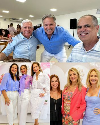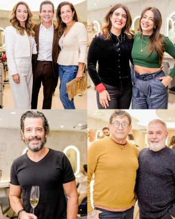 Flávio Kauffmann com os amigos José Lustosa e Paulo Areal// depois a Renata Ovídio com Ana Teresa Patrão e Claudia Zeraik e a Norine Carnevale com Leila Esposito e Regina Dantas