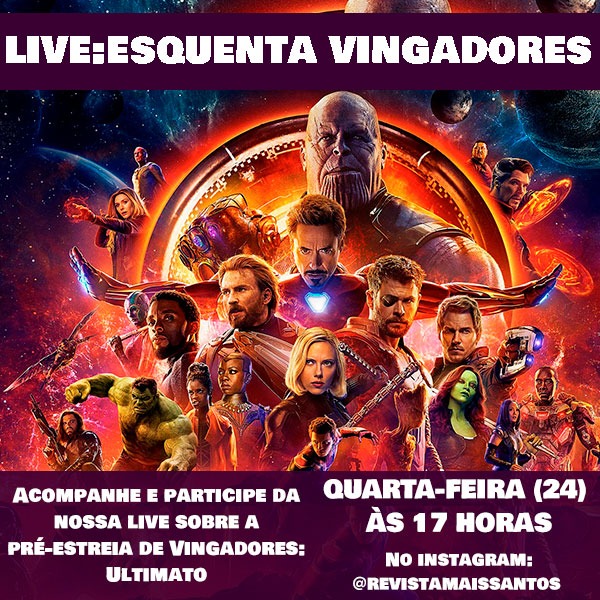 Se você é daqueles que está roendo as unhas de curiosidade sobre o desfecho dos seus heróis favoritos em Vingadores: Ultimato, não pode perder nossa live nesta quarta-feira (24), às 17 horas.