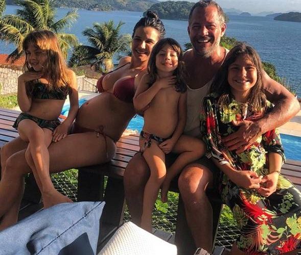 Mãe de Ayra e Kyara, ela agora terá um menino. No clique. o ator também posa ao lado da filha mais velha, Sofia, de 11 anos, fruto de relacionamento anterior.
