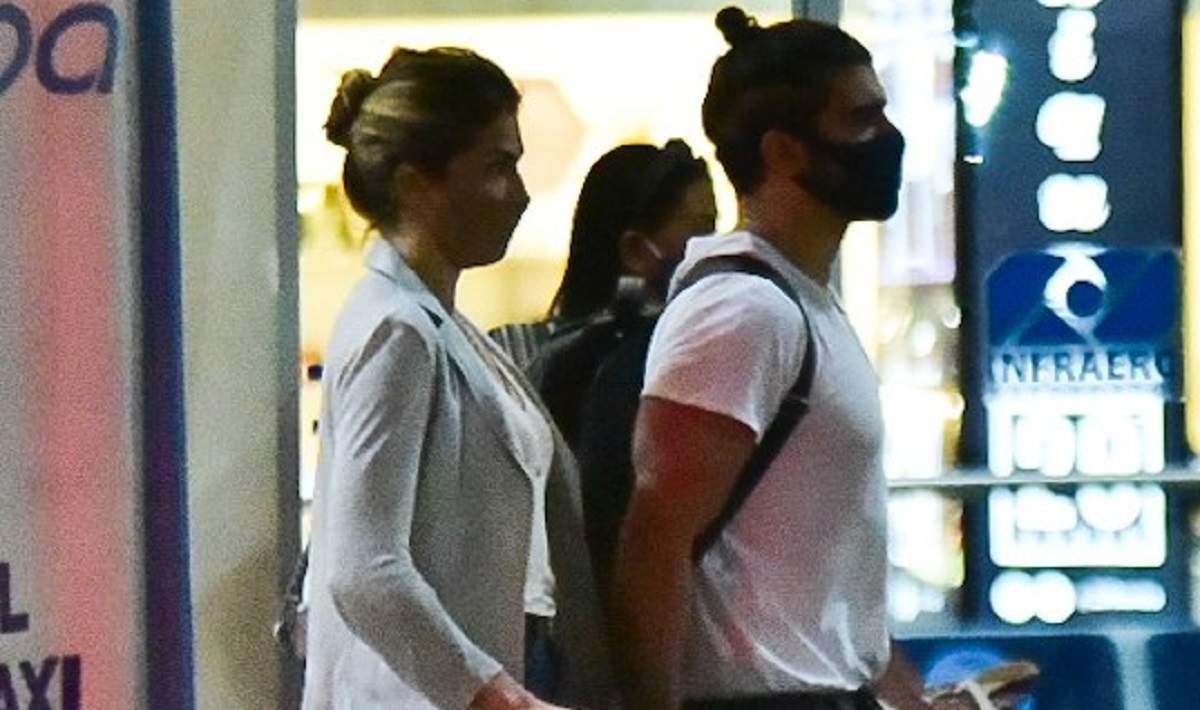 Usando máscara de proteção e de mãos dadas, os famosos não notaram a presença de paparazzi. O casal ficou um tempo na área dos táxis do aeroporto e depois deixou o local.