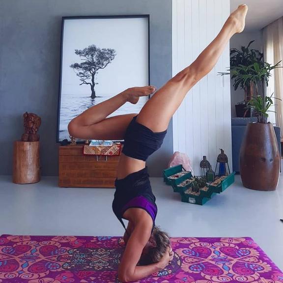 Na foto, a atriz voltou a praticar os seus exercícios de ioga e em sua legenda, ela escreveu mensagem celebrando: “Voltando! namastê.”.