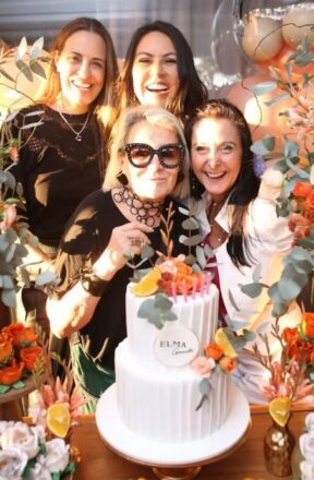 No bolo com as amigas Cláudia Dutra, Fatima Martins e Joana Wolf
