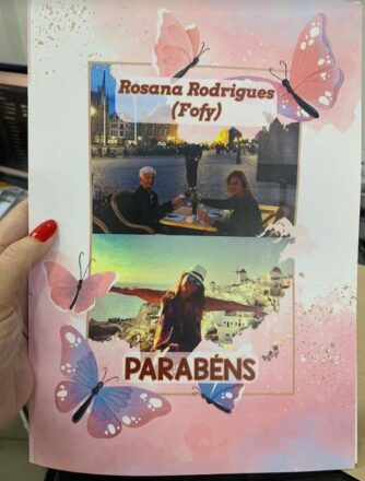 Com o cartão da lista organizada por Denise Grassi e Leila Esposito