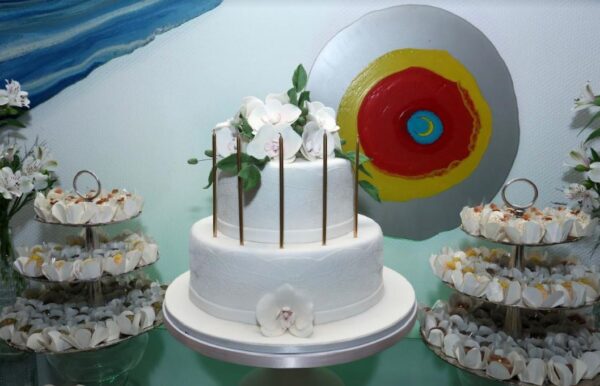 O bolo lindo e clean era branco , os doces maravilhosos, comidinhas deliciosas  e a decoração impecável deram o tom da festa.