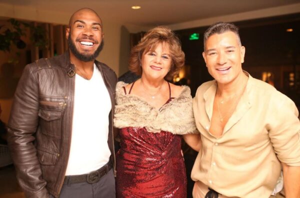 A aniversariante entre o casal Charles Terto e Marcelo Hicho