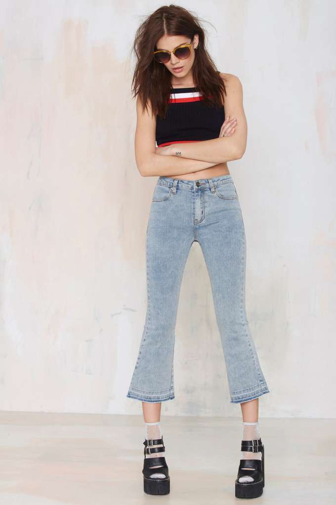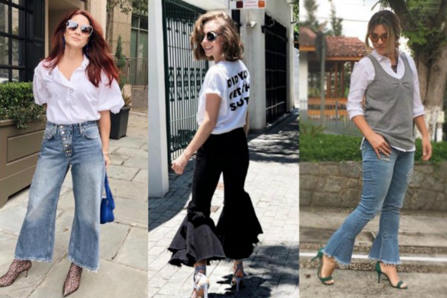 Essa peça, conhecida também como “boca de sino”, é um clássico dos anos 70 e costumava ter a barra quase encostando no chão. Mas até as peças mais tradicionais podem mudar, e pra melhor. Chamada de cropped flare, a novidade tem um bônus: a cintura alta permanece.