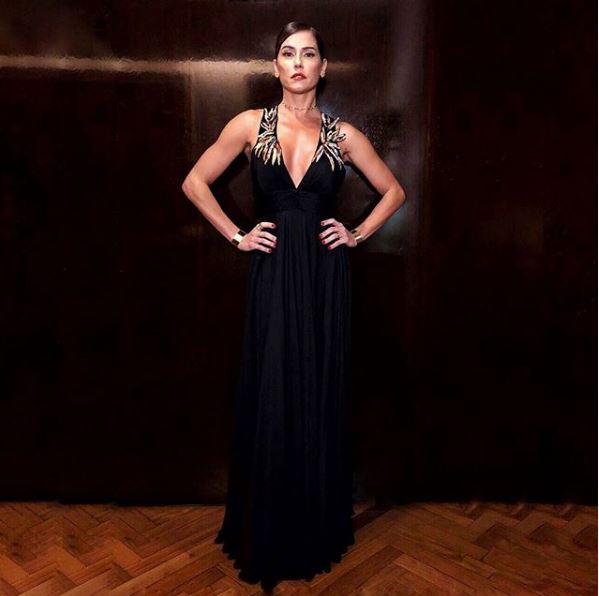 A apresentadora Isabella Fiorentino brilhou em um longo de crepe coral, da marca autoral do estilista Vitor Zerbinato. O modelo, que aposta na silhueta marcada, faz parte da nova coleção Inverno 2018 que chega às lojas no ano que vem.