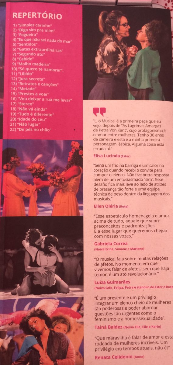 Na plateia gritinhos, risadinhas nervosas e até umas boas lágrimas saltam, afinal somos mulheres… Tudo é impecável, cuidadosamente pensado para trazer a tona com delicadeza, humor e ao mesmo tempo seriedade a discussão da homofobia, o feminicídio, o gênero e principalmente o Amor.