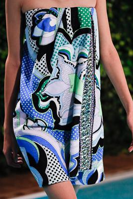 Fácil, sem muito esforço, elegante: os principais valores da Pucci pairam por lá, animados. O brilho dos cristais, babados cintilam como a espuma das ondas do mar, poás dão ritmo às estampas, laise proporciona graça e frescor.