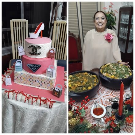 Amazonense muito querida, Adelma Terra comemorou aniversário na quinta feira passada. Depois da reza do terço,  foi servido  jantar, mas de comer rezando de tão delicioso: moqueca de salmão com banana e pedaços de moranga.