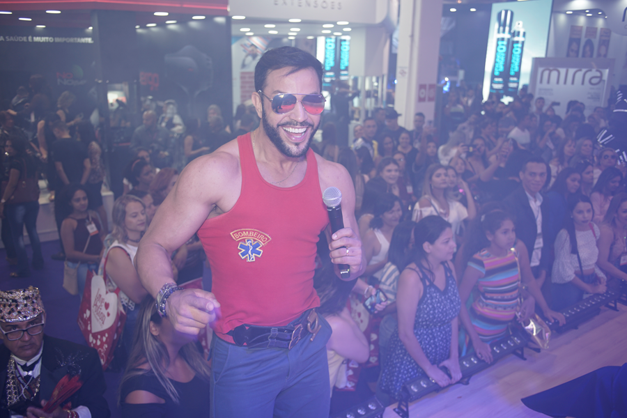 O modelo Rick Moreno, personagem conhecido como o Bombeiro da Eliana, colabora com a criação da linha masculina da Felps e também esteve no evento divulgando os produtos da marca.