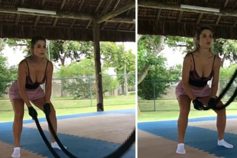 Flávia Alessandra faz questão de compartilhar parte da sua rotina com seus internautas. Sempre cuidando da saúde, a atriz publicou um vídeo nesta terça-feira (06/02) fazendo exercício físico com uma corda naval.