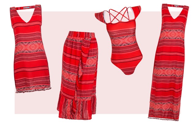Amigas de longa data e dona da marca, Helena Basiches fechou parceria e Helena desenvolveu uma estampa inédita cheia de referências étnicas e cores vivas, pensada para dar vida aos quatro modelos versáteis da collab. Uma saia, dois vestidos e um body.