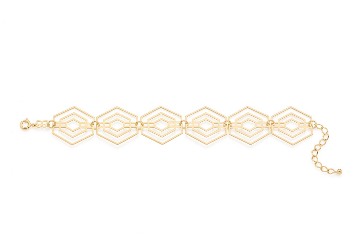 Para a sua Coleção Anual 2018, a marca traz diferentes perfis, como no caso do estilo “Raquel”, que reforça a geometria por meio de triângulos e quadrados, presentes em braceletes, maxi-brincos e anéis.