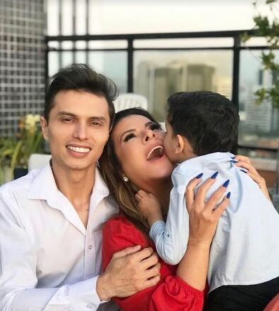 Ao lado do marido Gabriel e do filho Benjamim Miguel. “Minha família é benção de Deus”