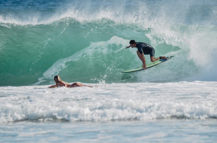 “Antes de finalizar a faculdade eu já pensava em viajar para o exterior para competir e estudar. Então, resolvi entrar de cabeça nesse sonho e comecei a trabalhar quase que o dia inteiro por aproximadamente seis meses para poder viajar. Eu dava aula de surf, consertava pranchas, trabalhava de bartender e ainda fazia uns freelances extras no Verão. Foi realmente muito puxado, mas hoje eu sou muito grato, porque eu sabia que isso iria se tornar realidade.