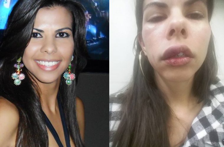 Nos registros, nota-se os lábios bastante inchados, além de arranhões por todo o rosto, inclusive nos olhos.