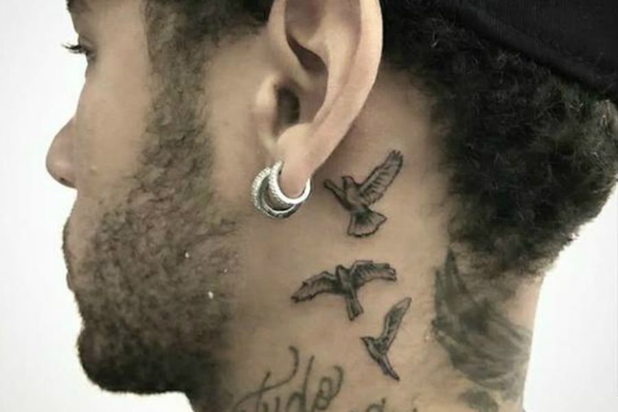 Apaixonado por tatuagens, o jogador Neymar Jr tatuou o pescoço, tornozelo e joelho. Foram quatro novas tatuagens. Uma delas o desenho de três andorinhas no pescoço.