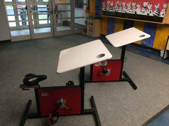 Os alunos com esse comportamento sentam na bicicleta e pedalam por quinze minutos, o que os deixa mais relaxados para dar andamento às aulas. Mas eles também podem ficar pedalando enquanto fazem as atividades, o que distribui a energia e ajuda a manter a concentração.