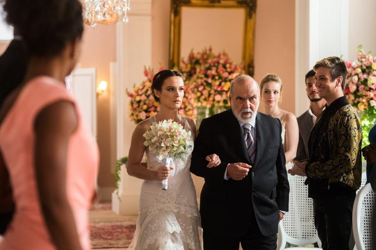 No capítulo desta quarta-feira (14/03), Clara, interpretada por Bianca Bin, se veste de noiva para o casamento com Renato, vivido por Rafael Cardoso. Embora a união não aconteça de fato, o vestido da personagem chamou a atenção dos telespectadores.