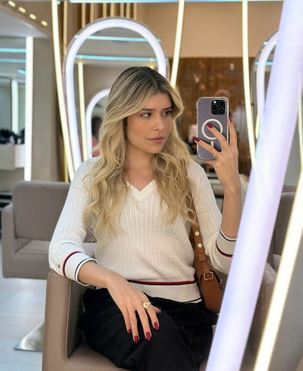 A influencer destaca, ainda: saias midi, que podem ser usadas para looks mais casuais ou arrumados; jaqueta jeans, “versátil e que pode ser usada em diversas combinações”, além de um bom cardigan leve, “para camadas adicionais à noite”.