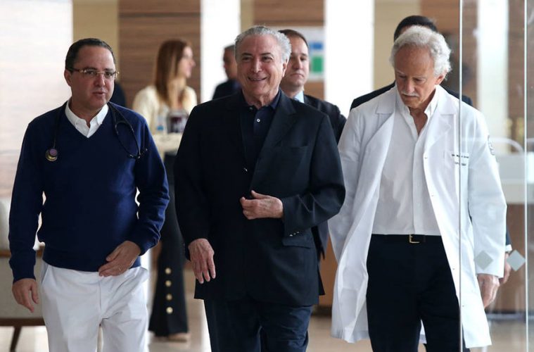 O presidente Michel Temer (PMDB), de 77 anos, deixou o hospital Sírio-Libanês, na capital paulista, por volta do meio-dia desta segunda-feira, 30. Ao sair, Temer disse que “foi tudo bem”, e que agora vai trabalhar de casa, em São Paulo. No entanto, por recomendação dos médicos, o peemedebista deve permanecer em repouso até quarta-feira, 1, quando está previsto o retorno a Brasília.