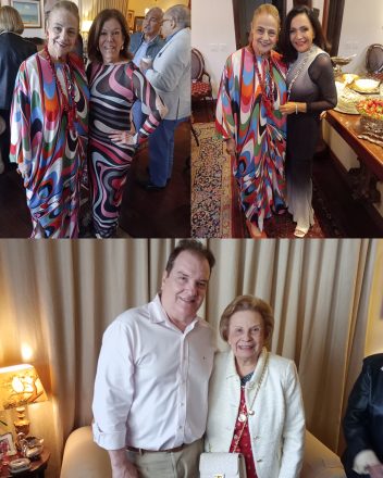 A Embaixatriz Regina Acquarone recebeu um grupo de amigas em seu apartamento da Lagoa para delicioso e agradável almoço português, com muito champagne e vinhos franceses, um seleto grupo de amigas do Itamaraty (Carriére), bem como da vida toda. O papo de tão bom entrou o anoitecer: das viagens, literatura com boas risadas e lembranças