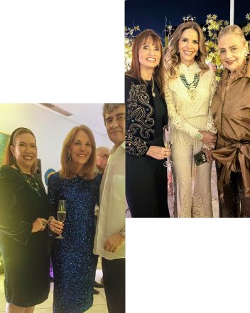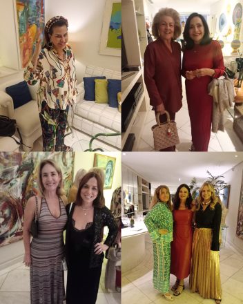 2-Embaixatrizes Elza Lima e Marta Gontijo com artista plástica Bea Machado. 3- Embaixatriz Lenir Lampréia e Marilu Rangel