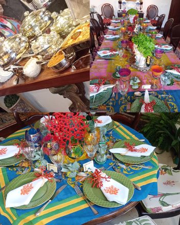 A Embaixatriz Regina Acquarone recebeu um grupo de amigas em seu apartamento da Lagoa para delicioso e agradável almoço português, com muito champagne e vinhos franceses, um seleto grupo de amigas do Itamaraty (Carriére), bem como da vida toda. O papo de tão bom entrou o anoitecer: das viagens, literatura com boas risadas e lembranças