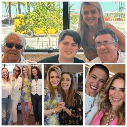 No alto Teka Simões com Darling e Patrícia Xavier…. Embaixo Cristina Tanure com Cristina Aboim e Claudia Simões em tarde gostosa de almoço no Iate Clube, na Urca