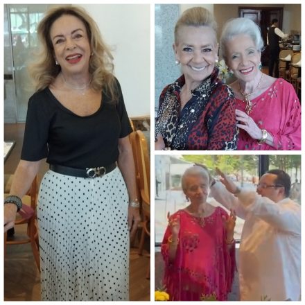 Na hora do parabéns, o padre Vinicius Pessoa deu uma bênção especial e todos rezaram “Pai Nosso” seguido de Ave Maria, derramando bênçãos para aniversariante e sua filha Roberta que aniversariou 2 dias antes. Para o abraço de Glória Severiano Ribeiro a Manoela Ferrari passando por Claudia Samico, Neném Cavalcanti e a Lydia Valansi (comodoro do Clube dos Marimbás)