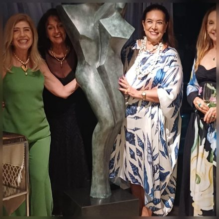 Lella com Ana Borrow, a Thyna Mendes e Cynthia de Paoli (detalhe a beleza da escultura)
