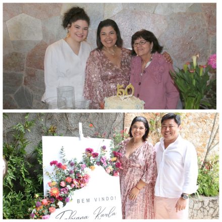 Atriz Fabiana Karla comemorou a chegada dos “50 anos” cercada de familiares e amigos do peito.Primeiro teve missa em ação de graças no Cristo Redentor, celebrada pelo padre Omar Raposo e depois seguiram para o Parabéns no Recanto do Barão, em SantaTeresa. A filha Laura Simões homenageou a mãe cantando músicas que emocionaram a todos