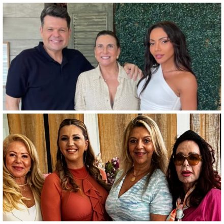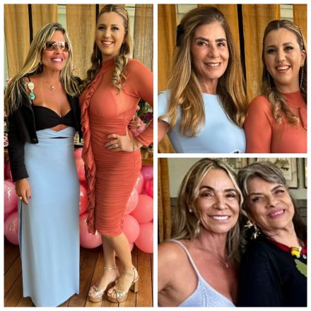 Marta Curzio com aniversariante Carol Panizza, depois Claudia Bueri com aniversariante e no final Rita Costa e Rose Addario