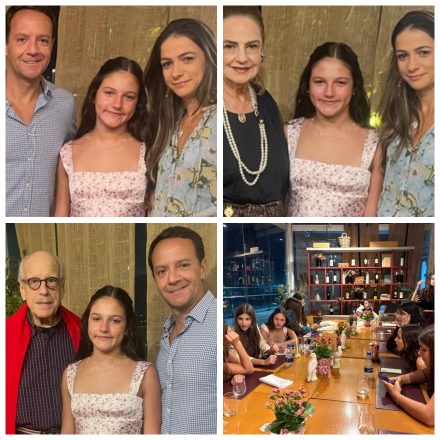 Com os pais Laura Beatriz e Luis Fernando Setembrino/Com avó Cristina Aboim e sua mãe.Depois com o Vovô Claudio Aboim e o pai Luis Fernando e finalmente com amigas em torno da boa e deliciosa mesa