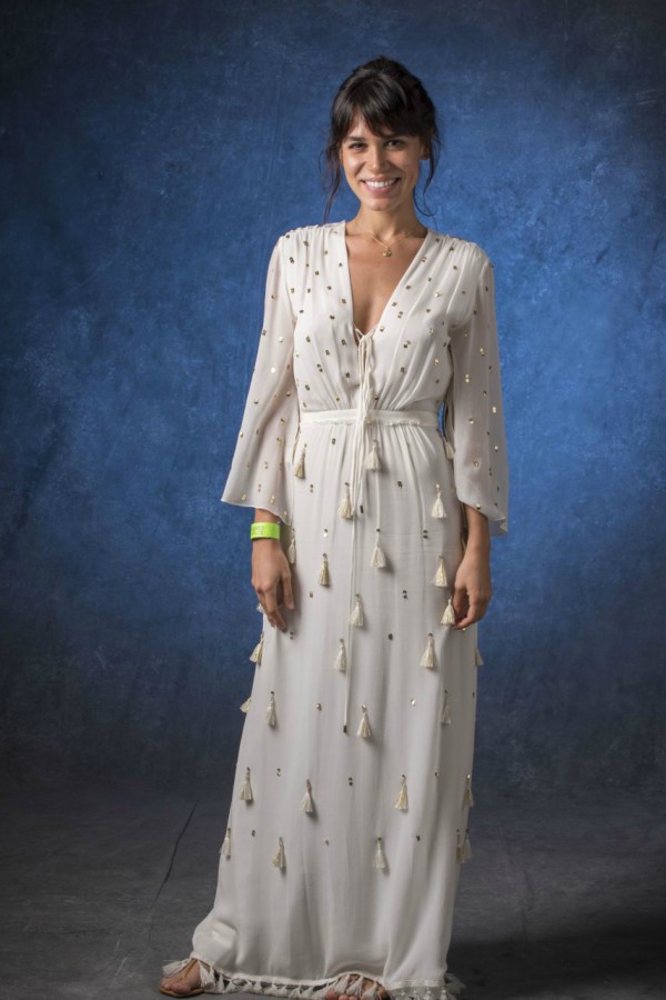Embora o branco tenha dominado no evento, Patricia Poeta abriu mão da cor e caprichou no visual com um vestido frente única da coleção Alto Verão Renata Campos e acessórios Lool. Com os fios ruivos, Isabella Santoni também optou por um vestido midi azulado, combinado com scarpins nude.