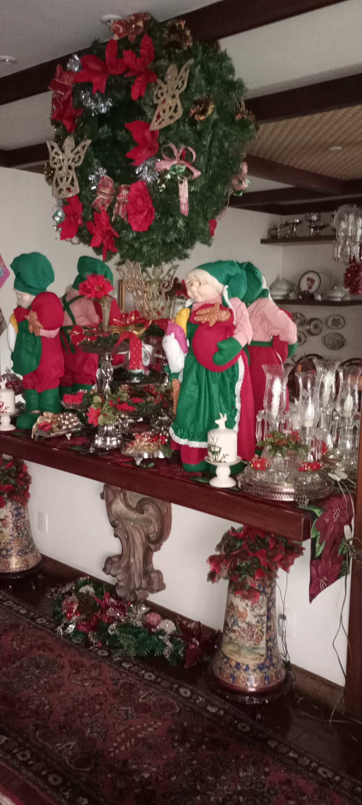 Renata Fraga fofocando com o bom velhinho/ depois Laura Beatriz e Cristina Aboim…/ Detalhe de uma mesinha