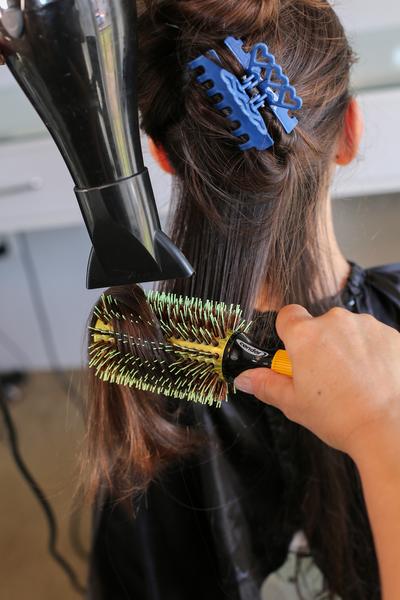 2. Faça a escova (lembre-se de usar protetor térmico);